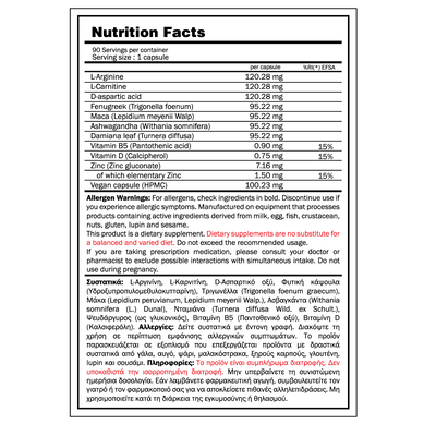 ✔ Ενίσχυση της λίμπιντο & της σεξουαλικής υγείας – Τα Damiana, Maca & Zinc υποστηρίζουν τη σεξουαλική λειτουργία και τη φυσική παραγωγή τεστοστερόνης.