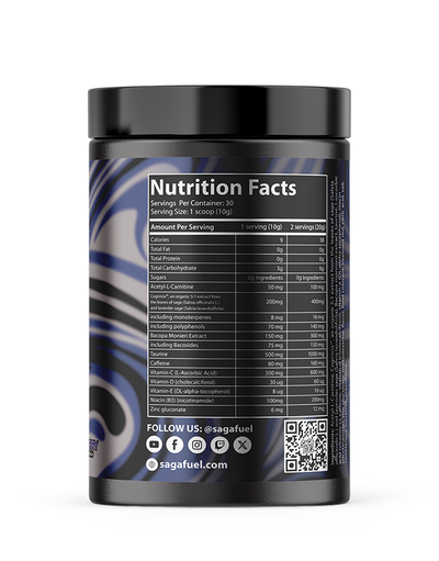 Ο κύριος στόχος του sagafuel είναι να σου δώσει μοναδική συγκέντρωση, ενέργεια και συνέπεια σε κάθε δραστηριότητα που συμμετέχεις, με το μοναδικό μείγμα νοοτροπικών, καφεΐνης και μοναδικών συστατικών που δεν μπορείς να βρείς πουθενά αλλού.Θα αισθάνεσαι αρκετά δυνατός έτσι ώστε να συντρίψεις οποιαδήποτε εμπόδια μπορεί να παρουσιάστουν μέσα στην ημέρα σου. Είτε εργάζεσαι στο laptop, είτε χτίζεις την επιχείρησή σου ή ακόμα και στο να συντρίψεις τους εχθρούς σου στα αγαπημένα σου βιντεοπαιχνίδια.Το sagafuel είναι πραγματικά σχεδιασμένο για να πάει καθε κλαδο της ζωή σου στο επόμενο επίπεδο.Αντικατέστεισε τα ενεργειακά ποτά μια και καλή, χρησιμοποιώντας το sagafuel το οποίο περιεχει 10 φορές πιο δυνατά συστατικά, νοοτροπικές ουσίες η οποίες θα αυξήσουν την εγκεφαλική και γνωστική σου λειτουργια. Πέρα απ'την πληθώρα πλεονεκτημάτων του, το sagafuel περιέχει φυσική καφεΐνη η οποία δεν θα σου προκαλέσει κρασάρισμα μετά την κατανάλωση του, σε σύγκριση με τα ενεργειακά ποτά τα οποία έχουν συνθετική καφεΐνη.