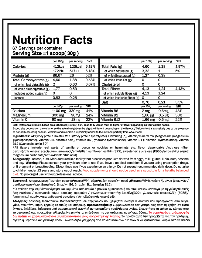 66 δόσεις/κουτί 1 δόση = 1 scoop(30g) με 200-300ml* νερό.